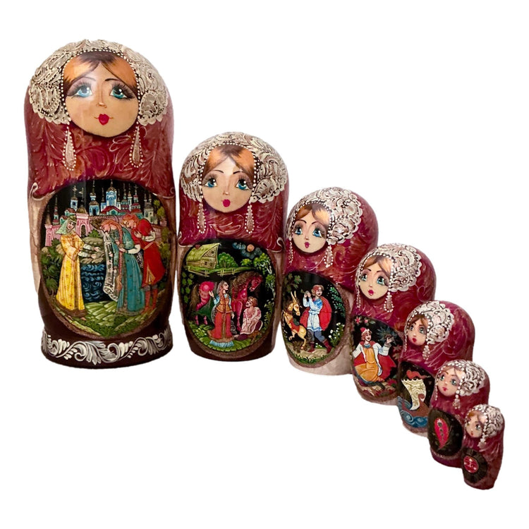 This fabulous nesting dolls would be great gift for kids, for boys or girls. Matryoshka doll futures popular Russian fairy tale stories, artistically hand painted at 7 dolls. When you look for unique, unforgettable gift for kids, a Russian dolls is the best finding. Very often people ask where to buy authentic Russian nesting dolls. Easy answer: at our online store Buyrussiangifts. We have the biggest variety and the best prices for all kind of matryoshka - from an inexpensive items to collectible, one of a kind artwork.