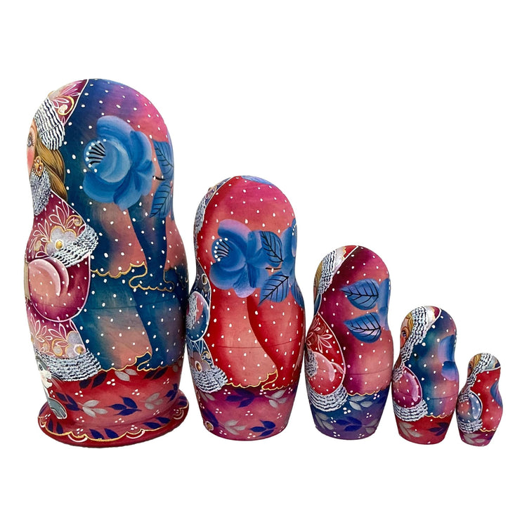 One of the most popular Russian dolls are Christmas nesting dolls. We present authentic Russian matryoshka Russian Winter Beauty. This magnificent doll artistically painted by high skilled artist from Sergeev Posad, Russia. This rare masterpiece matryoshka will be a star at any folk art collection.
